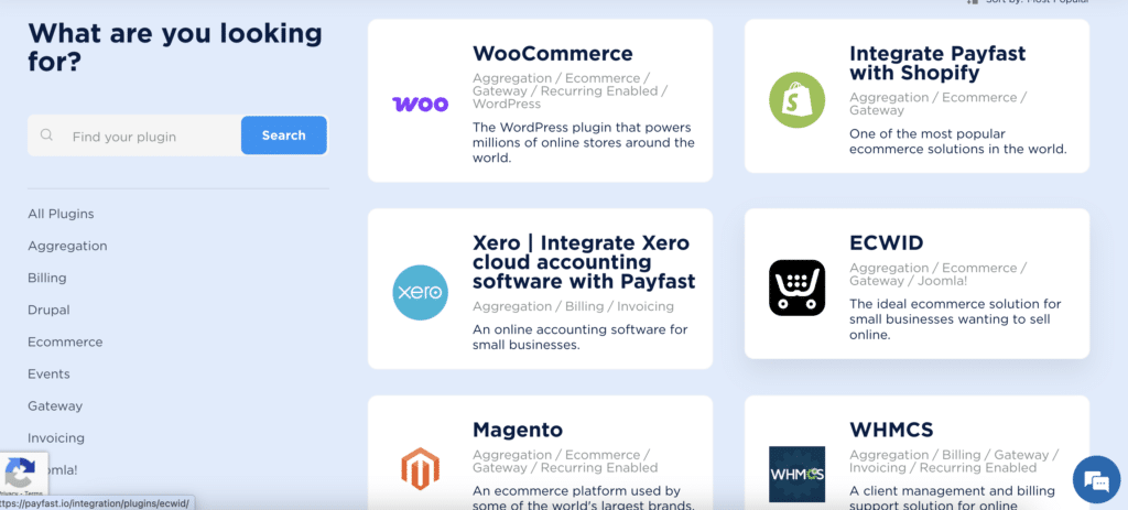 Payfast integrates with over 70 e-commerce platforms and tools, making it easy to plug into whatever system you’re already using. Some of the most popular integrations include Shopify, WooCommerce (WordPress), Magento, PrestaShop, BigCommerce, and Jotform.