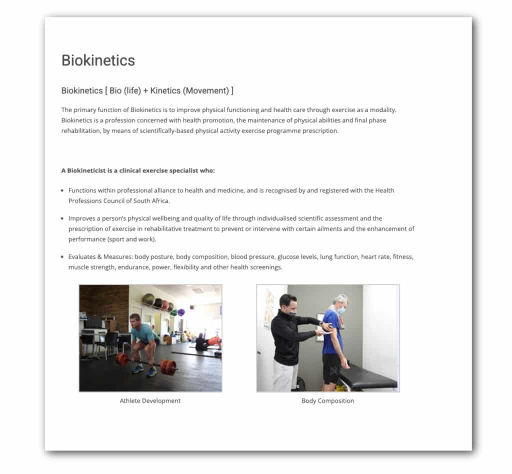 Pinnacle's website showcases their broad skilled team as well as their dynamic facility in which they treat patients and offer exercise classes.