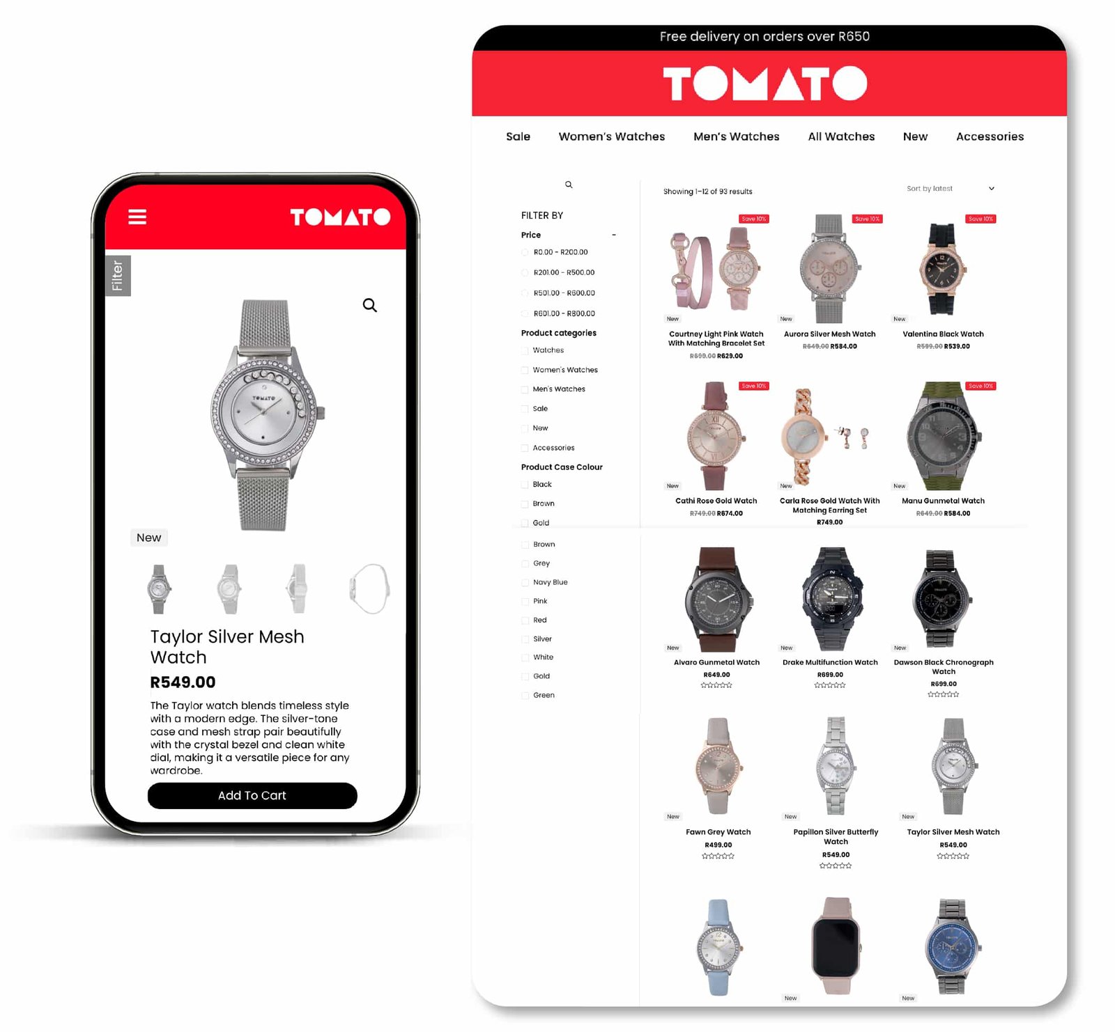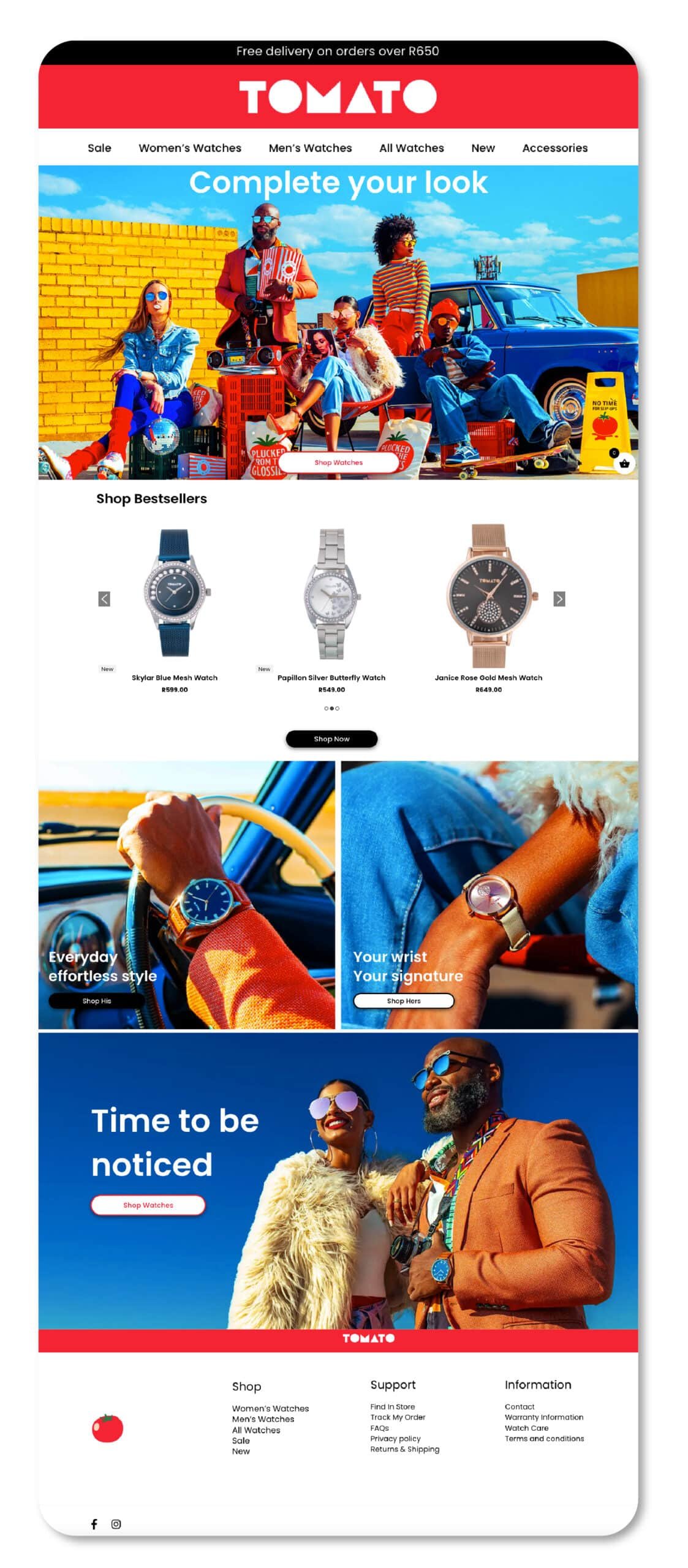 The Tomato Watch website is modern, easy to navigate and showcases the versatility of their watch collections.